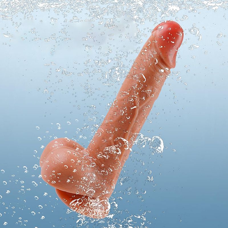 Confeccionado em silicone líquido premium e ABS, possui glande definida, textura de veias e escroto, garantindo um visual e sensação extremamente próximos do real. A ventosa na base permite fixação firme em superfícies lisas, possibilitando penetrações em diferentes ângulos e posições sem necessidade de apoio manual.